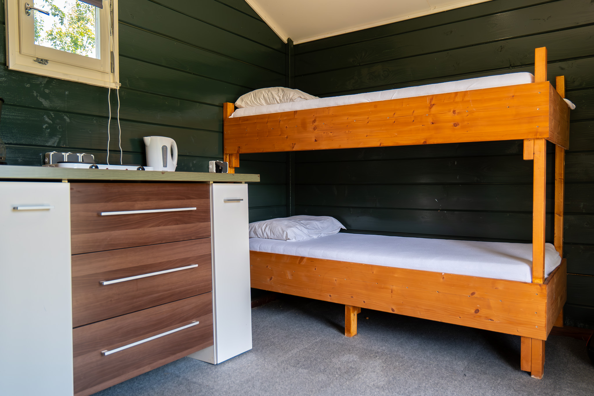 Heb je geen eigen caravan, camper of tent? Huur een klassieke trekkershut (voor twee of vier personen) of een compleet ingerichte chaletcaravan (voor vier of zes personen). De trekkershut huur je al vanaf één nacht, in een chaletcaravan verblijf je minimaal drie nachten. Makkelijk voor als je met zo weinig mogelijk spullen wil reizen. Het enige dat je zelf hoeft mee te nemen, is namelijk beddengoed (slaapzak of dekbed) en linnengoed.